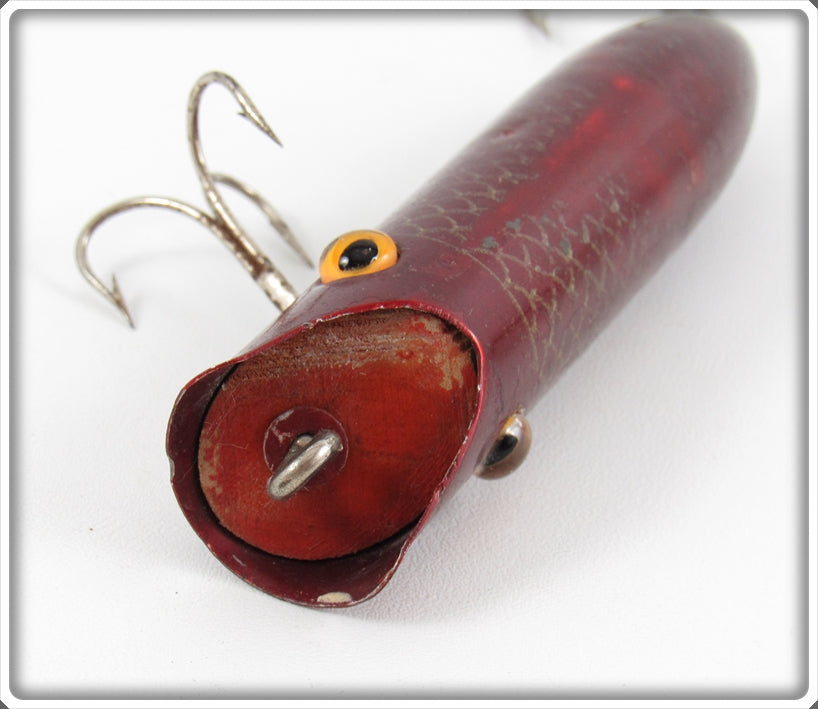 This is a nice old Michigan Made Red Brighte Eye lure that was sold on Tough Lures! Vintage and antique fishing lures are added for sale often so keep checking back! I buy old lures so feel free to contact me if you have any to sell.