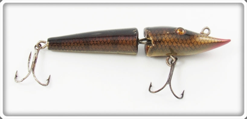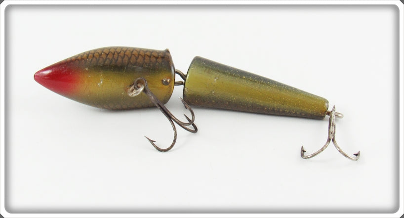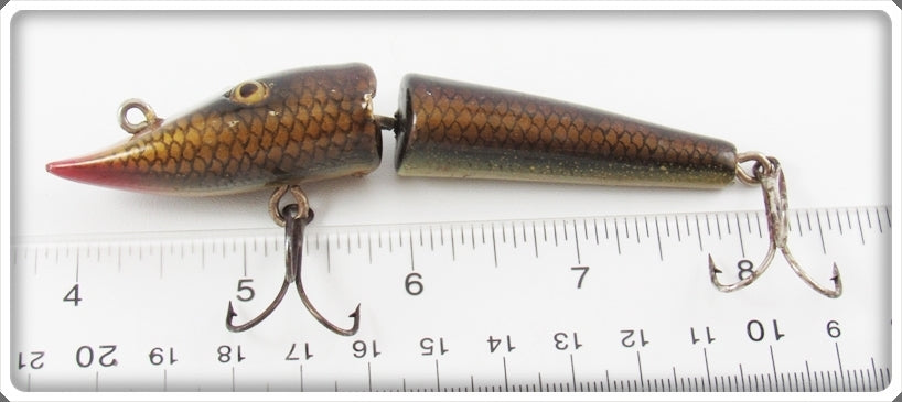 This is a nice old Moonlight Gold Scale Jointed Pikaroon lure # 2007 that was sold on Tough Lures! Vintage and antique fishing lures are added for sale often so keep checking back! I buy old lures so feel free to contact me if you have any to sell.