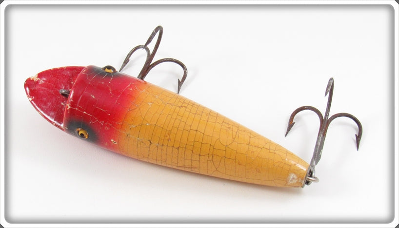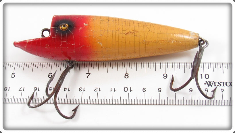 This is a nice old Moonlight Red Head White Musky Wonder lure that was sold on Tough Lures! Vintage and antique fishing lures are added for sale often so keep checking back! I buy old lures so feel free to contact me if you have any to sell.