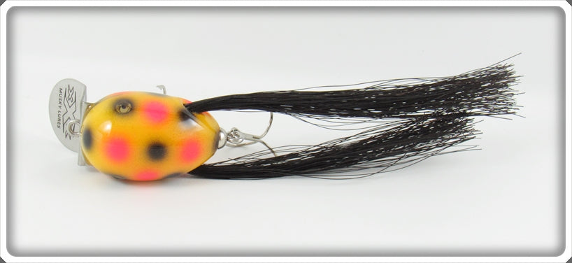 This is a nice Musky Dan XXX Yellow Spotted Baby Dingbat type lure that was sold on Tough Lures! Vintage and antique fishing lures are added for sale often so keep checking back! I buy old lures so feel free to contact me if you have any to sell.
