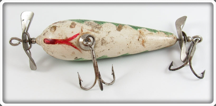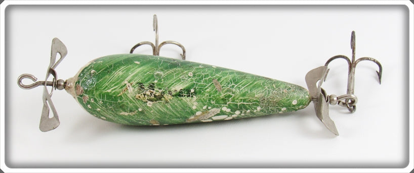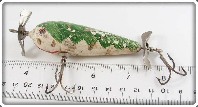This is a nice old Myers & Spellman Green And White Minnow lure that was sold on Tough Lures! Vintage and antique fishing lures are added for sale often so keep checking back! I buy old lures so feel free to contact me if you have any to sell.