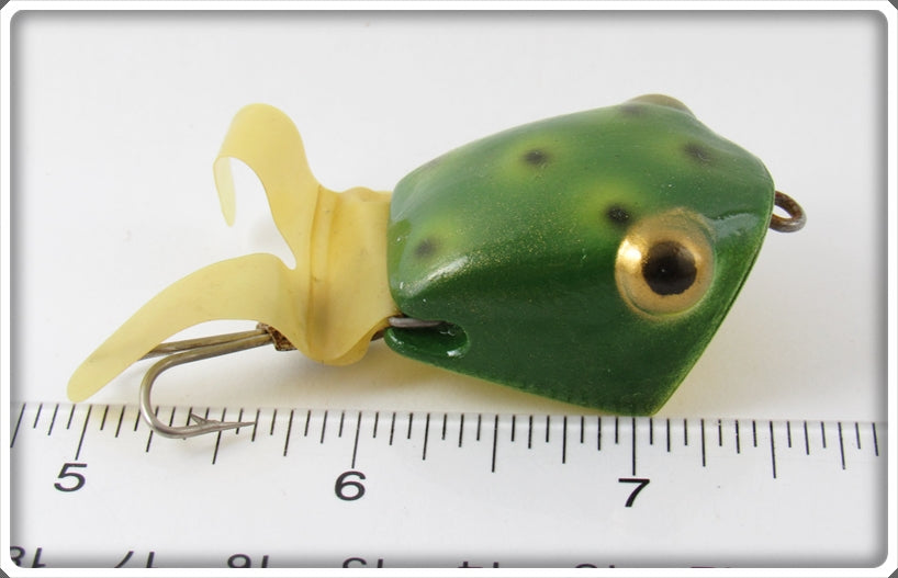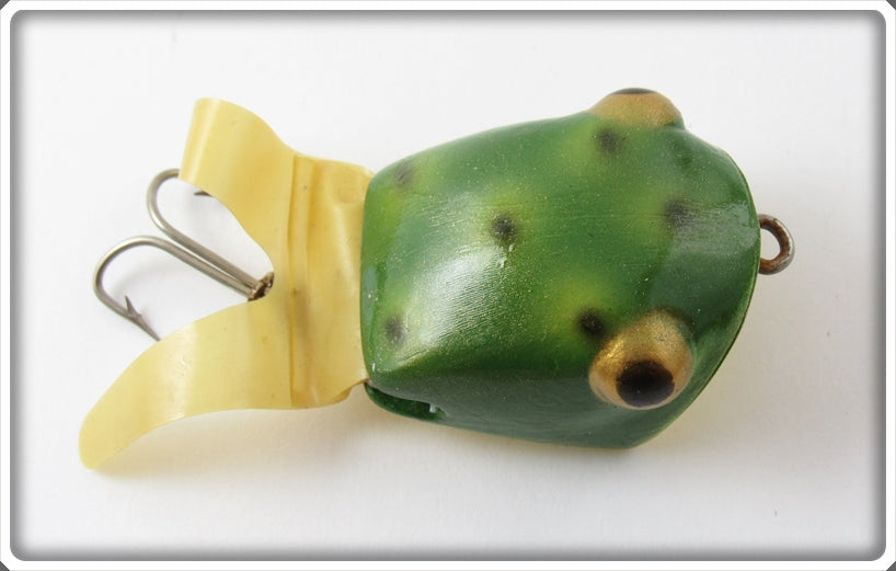This is a nice old Naturalure Green Strikee Frog lure that was sold on Tough Lures! Vintage and antique fishing lures are added for sale often so keep checking back! I buy old lures so feel free to contact me if you have any to sell.