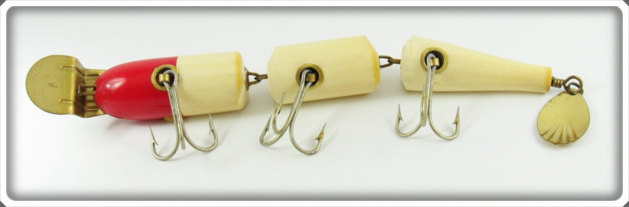 Old Wooden Bait Co Red & White Triple Jointed Leviathan Musky Bait