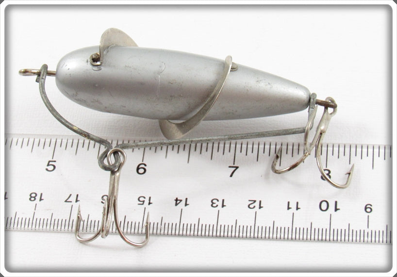 This is a nice old P & K Silver Spinning Minnie lure that was sold on Tough Lures! Vintage and antique fishing lures are added for sale often so keep checking back! I buy old lures so feel free to contact me if you have any to sell.