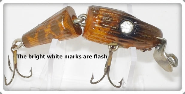 This is a nice old Paw Paw Bonehead Jointed Swamp Minnow lure # 12-B that was sold on Tough Lures! Vintage and antique fishing lures are added for sale often so keep checking back! I buy old lures so feel free to contact me if you have any to sell.