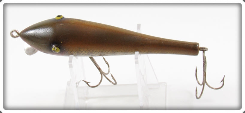 This is a nice old Paw Paw Gold Scale Old Chub Sucker lure that was sold on Tough Lures! Vintage and antique fishing lures are added for sale often so keep checking back! I buy old lures so feel free to contact me if you have any to sell.