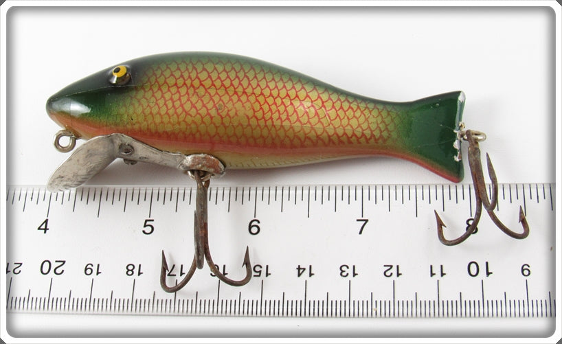 This is a nice old Paw Paw Green & Red Scale Large Caster lure that was sold on Tough Lures! Vintage and antique fishing lures are added for sale often so keep checking back! I buy old lures so feel free to contact me if you have any to sell.