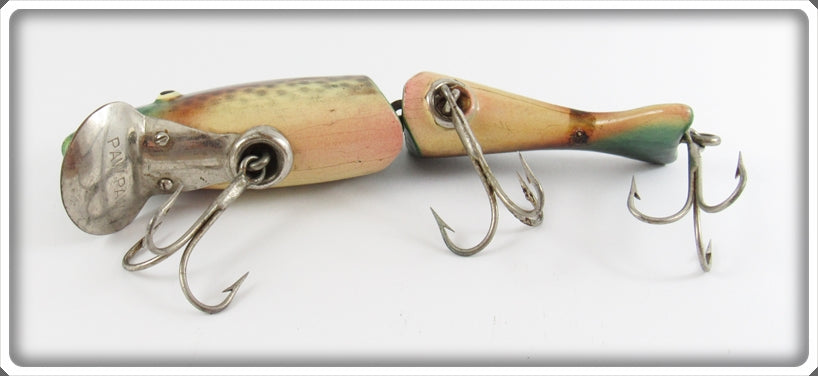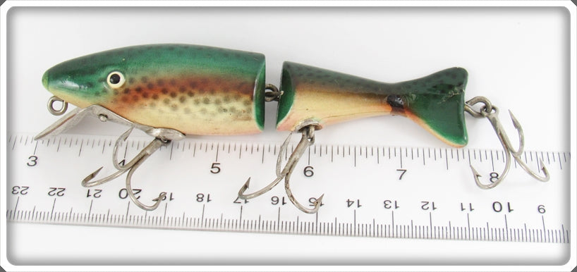 This is a nice old Paw Paw Rainbow Trout Jointed Trout Caster lure # C1624 that was sold on Tough Lures! Vintage and antique fishing lures are added for sale often so keep checking back! I buy old lures so feel free to contact me if you have any to sell.
