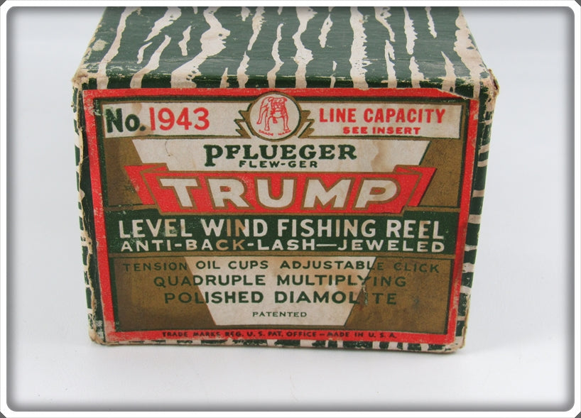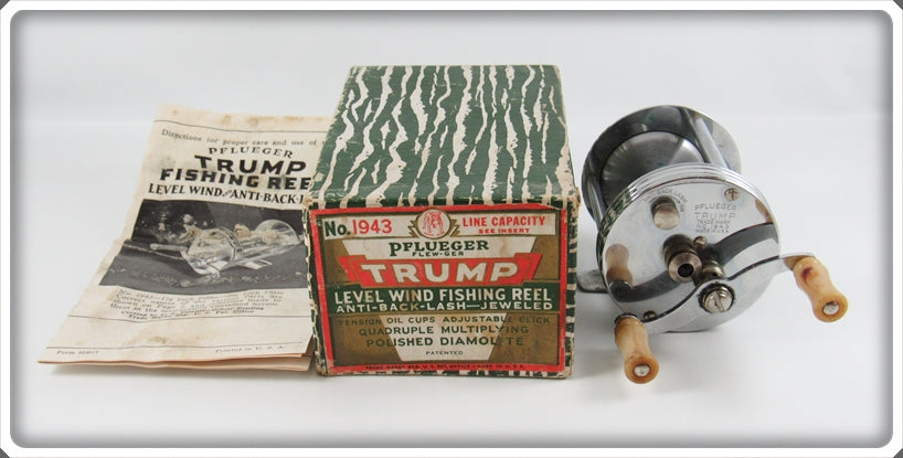This is a nice old Pflueger 1943 Trump Level Wind Reel that was sold on Tough Lures! Vintage and antique fishing lures are added for sale often so keep checking back! I buy old lures so feel free to contact me if you have any to sell.