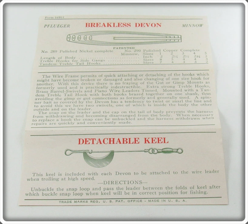 This is a nice old Pflueger Copper Size 4 Breakless Devon Minnow lure that was sold on Tough Lures! Vintage and antique fishing lures are added for sale often so keep checking back! I buy old lures so feel free to contact me if you have any to sell.