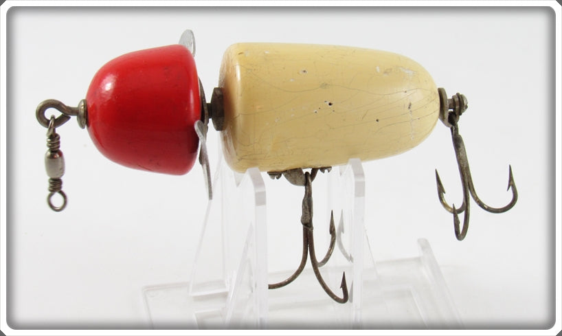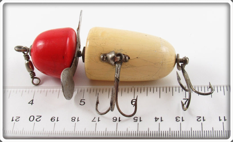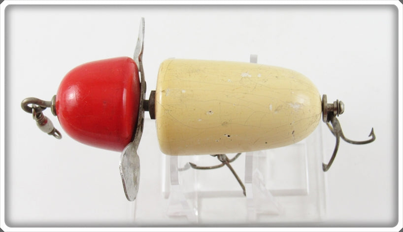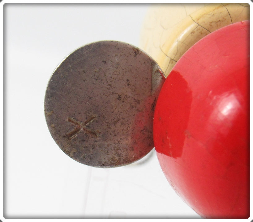 This is a nice old Pflueger Kingfisher White Red Head with X on the Prop Globe lure # X3796 that was sold on Tough Lures! Vintage and antique fishing lures are added for sale often so keep checking back! I buy old lures so feel free to contact me if you have any to sell.