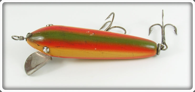 This is a nice old Pflueger Rainbow All In One Minnow lure # 3573 that was sold on Tough Lures! Vintage and antique fishing lures are added for sale often so keep checking back! I buy old lures so feel free to contact me if you have any to sell.