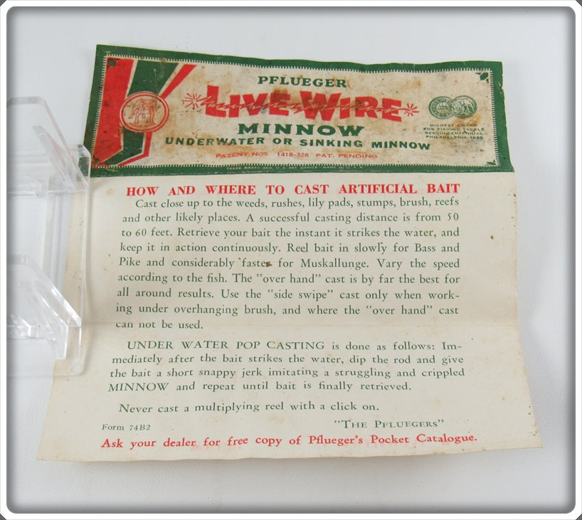 This is a nice old Pflueger Silver Sides Scale Livewire lure # 7611 that was sold on Tough Lures! Vintage and antique fishing lures are added for sale often so keep checking back! I buy old lures so feel free to contact me if you have any to sell.
