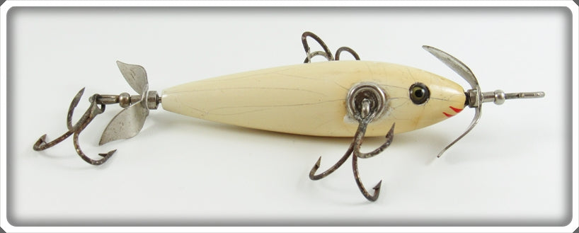 This is a nice old Pflueger All White Three Hook Neverfail Minnow lure # 3180 that was sold on Tough Lures! Vintage and antique fishing lures are added for sale often so keep checking back! I buy old lures so feel free to contact me if you have any to sell.
