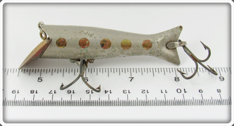This is a nice old Pflueger Spotlight Near Gold TNT Minnow lure # 6938 that was sold on Tough Lures! Vintage and antique fishing lures are added for sale often so keep checking back! I buy old lures so feel free to contact me if you have any to sell.