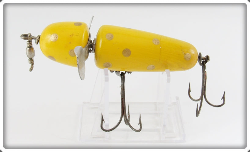 This is a nice old Pflueger Yellow Gold Spots Globe lure that was sold on Tough Lures! Vintage and antique fishing lures are added for sale often so keep checking back! I buy old lures so feel free to contact me if you have any to sell.