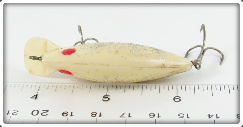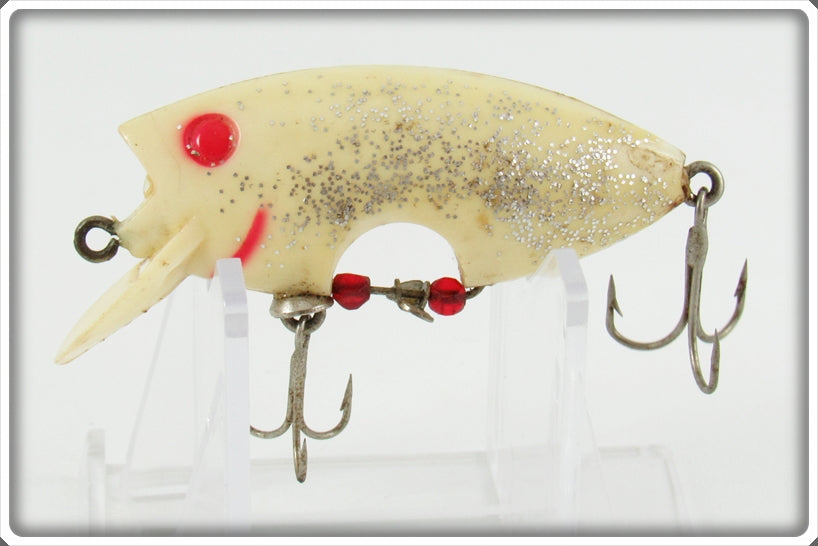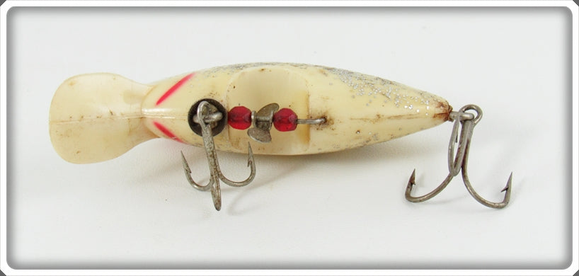 This is a nice old Poe's Ghost Silver Glitter Locomotion lure that was sold on Tough Lures! Vintage and antique fishing lures are added for sale often so keep checking back! I buy old lures so feel free to contact me if you have any to sell.