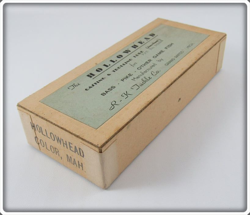This is a nice old RK Tackle Co Mahogany Hollowhead lure # MAH that was sold on Tough Lures! Vintage and antique fishing lures are added for sale often so keep checking back! I buy old lures so feel free to contact me if you have any to sell.