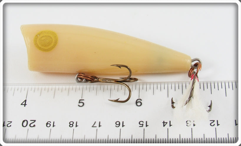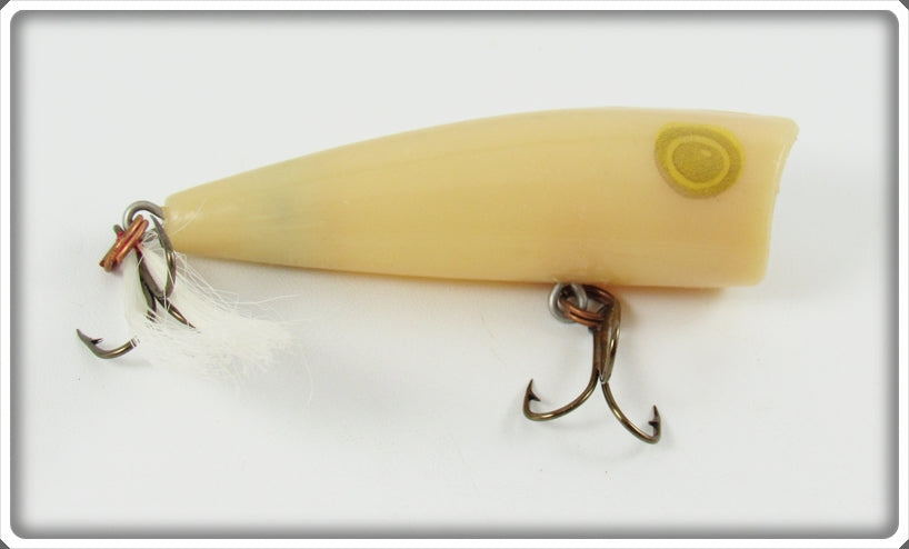 This is a nice old Rebel Bone With Painted Eyes Pop R lure # P 7000 that was sold on Tough Lures! Vintage and antique fishing lures are added for sale often so keep checking back! I buy old lures so feel free to contact me if you have any to sell.