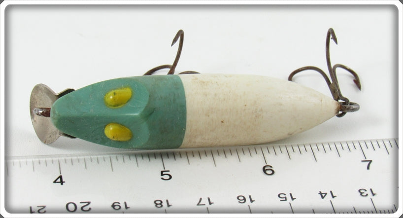 This is a nice old Rinehart Blue Head White Body Chubby lure that was sold on Tough Lures! Vintage and antique fishing lures are added for sale often so keep checking back! I buy old lures so feel free to contact me if you have any to sell.