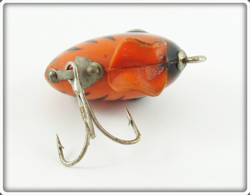 This is a nice old Ropher Orange Black Ribs Fin Dingo lure that was sold on Tough Lures! Vintage and antique fishing lures are added for sale often so keep checking back! I buy old lures so feel free to contact me if you have any to sell.