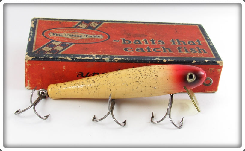 This is a nice old Shakespeare White & Red With Glitter Buddy Bait lure # WRS 6568 that was sold on Tough Lures! Vintage and antique fishing lures are added for sale often so keep checking back! I buy old lures so feel free to contact me if you have any to sell.