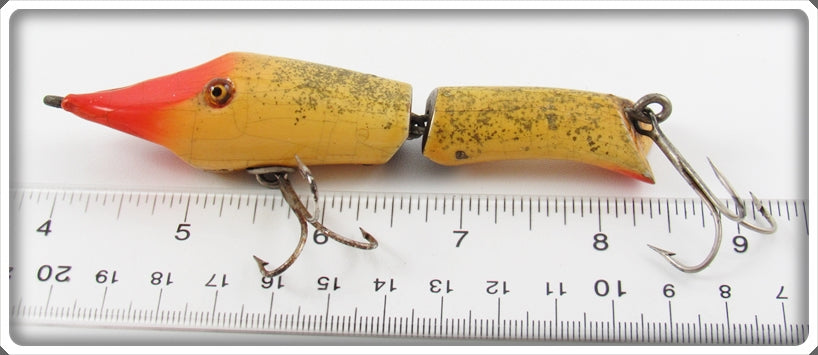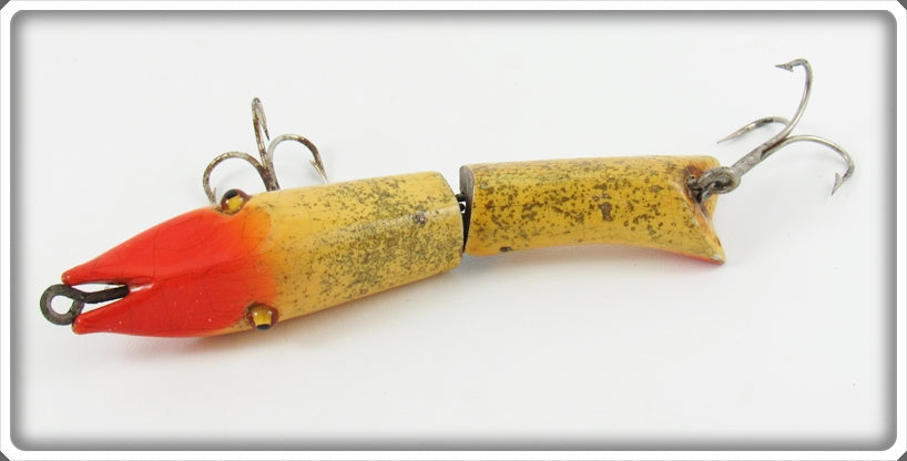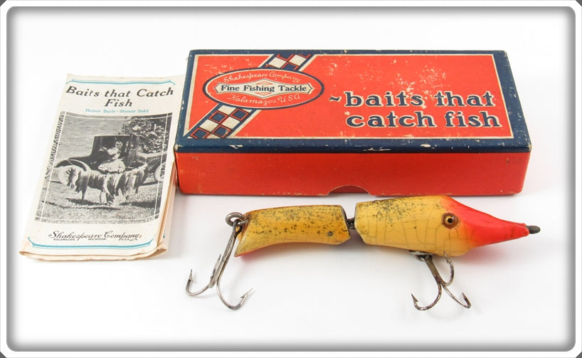 This is a nice old Shakespeare White & Red With Gold Flitter Darting Shrimp lure # 135 WRG that was sold on Tough Lures! Vintage and antique fishing lures are added for sale often so keep checking back! I buy old lures so feel free to contact me if you have any to sell.