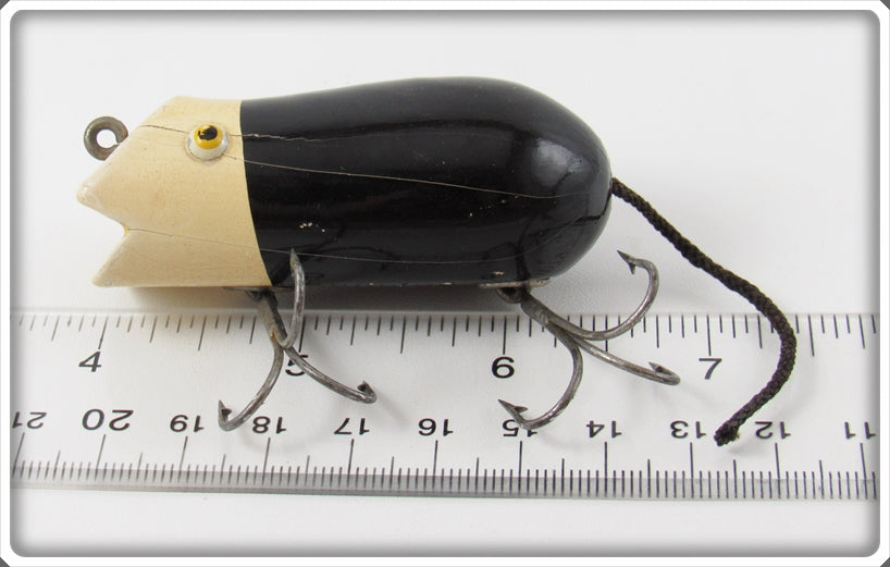 This is a nice old Creek Chub Shur Strike Black & White Mouse lure # MO-11 that was sold on Tough Lures! Vintage and antique fishing lures are added for sale often so keep checking back! I buy old lures so feel free to contact me if you have any to sell.