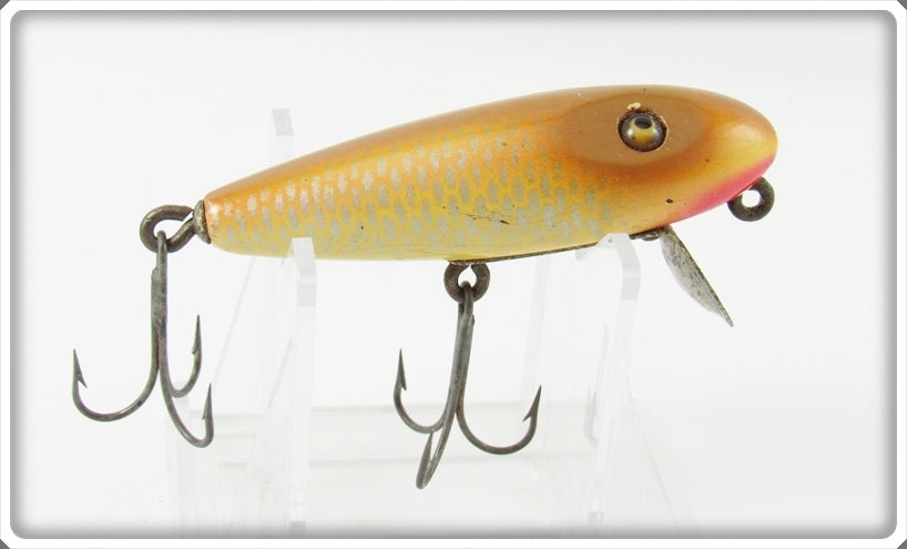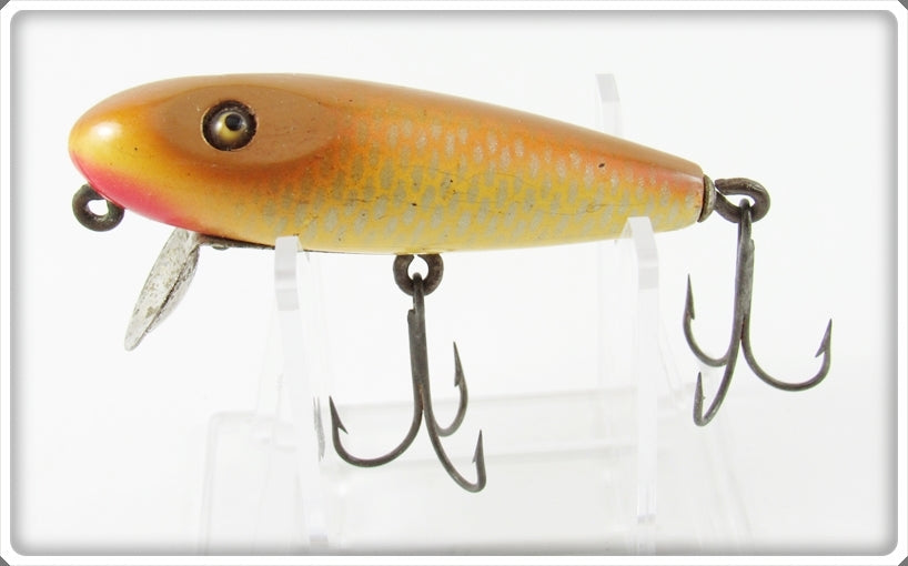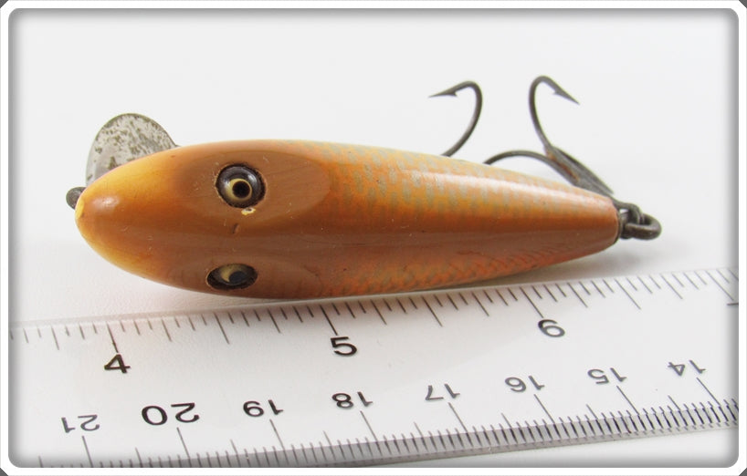 This is a nice old Shur Strike Peanut Butter Baby Pikie lure # BP-1 that was sold on Tough Lures! Vintage and antique fishing lures are added for sale often so keep checking back! I buy old lures so feel free to contact me if you have any to sell.
