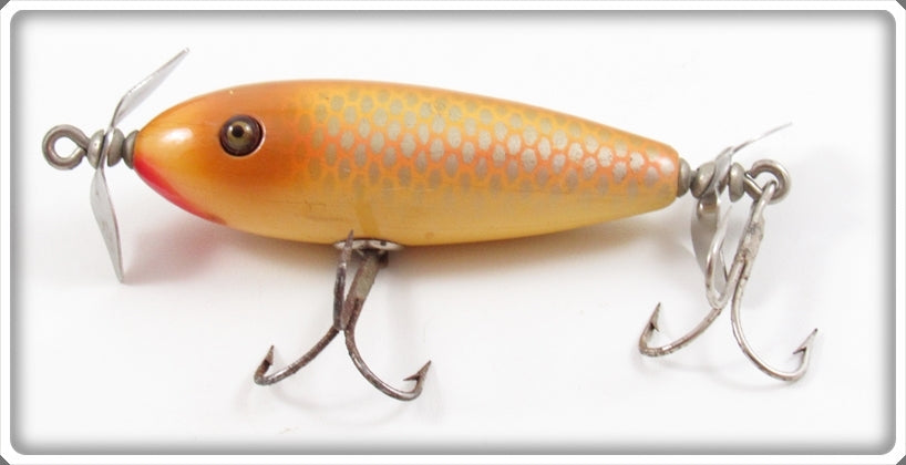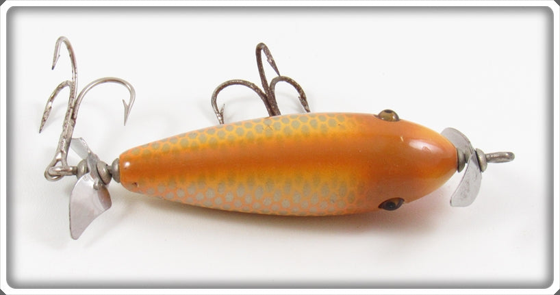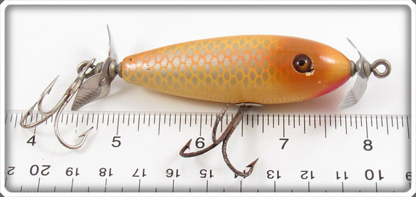 This is a nice old Shur Strike Peanut Butter Baby Surf Oreno lure that was sold on Tough Lures! Vintage and antique fishing lures are added for sale often so keep checking back! I buy old lures so feel free to contact me if you have any to sell.