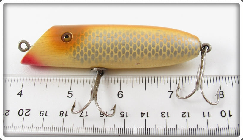 This is a nice old Shur Strike A-1 Peanut Butter Slant Nose lure # A1 that was sold on Tough Lures! Vintage and antique fishing lures are added for sale often so keep checking back! I buy old lures so feel free to contact me if you have any to sell.