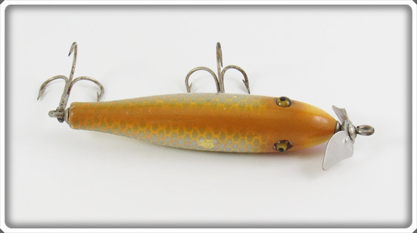This is a nice old Creek Chub Shur Strike Peanut Butter Style E Underwater Minnow lure # E1 that was sold on Tough Lures. Vintage and antique fishing lures are added for sale often so keep checking back! I buy old lures so feel free to contact me if you have any to sell.