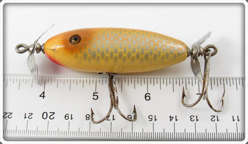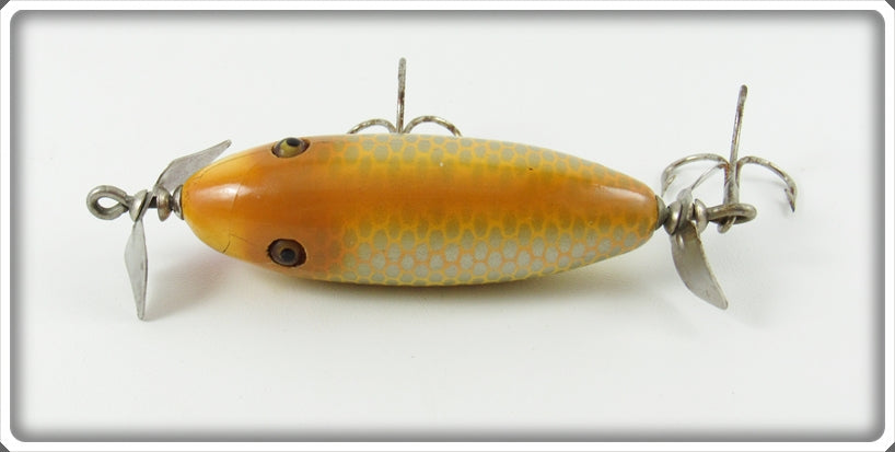 This is a nice old Shur Strike Peanut Butter Baby Surf Oreno lure # BSO-1 that was sold on Tough Lures! Vintage and antique fishing lures are added for sale often so keep checking back! I buy old lures so feel free to contact me if you have any to sell.
