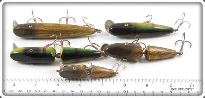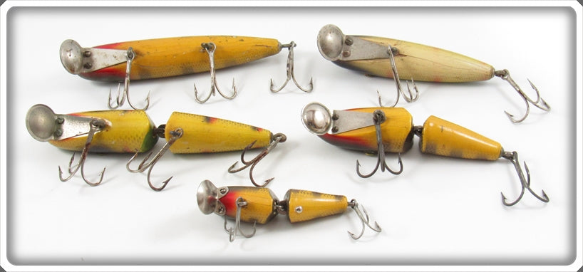 This is a nice old Shur Strike Pikie Lot Of Five that was sold on Tough Lures! Vintage and antique fishing lures are added for sale often so keep checking back! I buy old lures so feel free to contact me if you have any to sell.