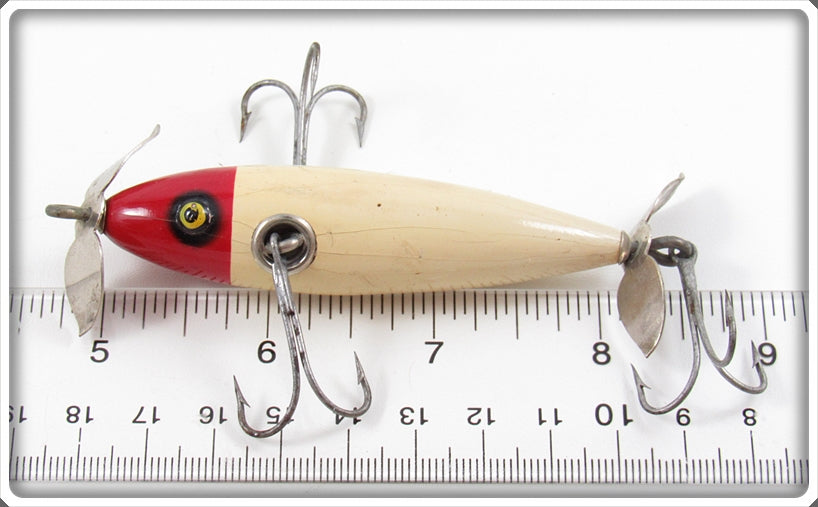 This is a nice old Shur Strike Red Head White Three Hook Minnow lure that was sold on Tough Lures! Vintage and antique fishing lures are added for sale often so keep checking back! I buy old lures so feel free to contact me if you have any to sell.