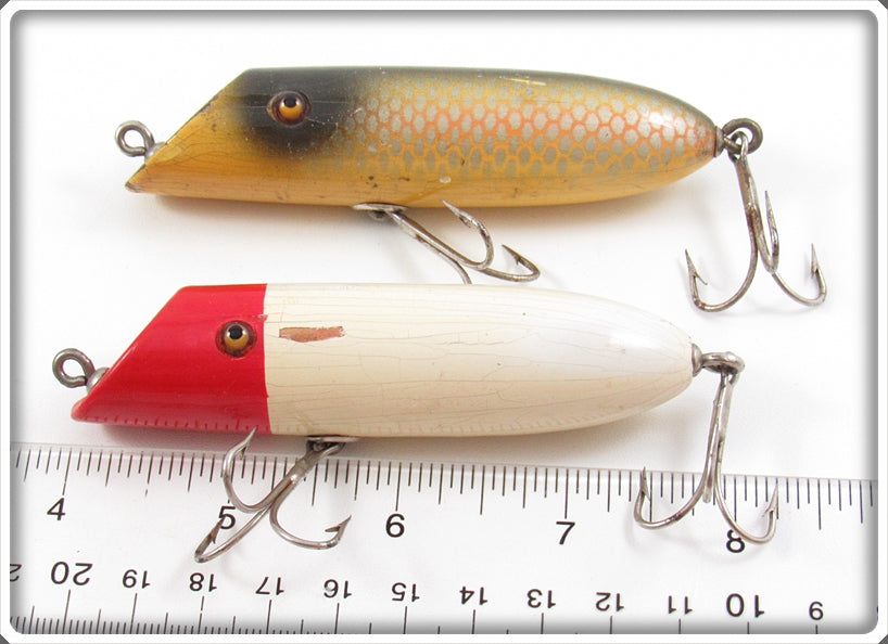 This is a nice old Shur Strike Shiner Scale & Red Head White Slant Nose Pair that was sold on Tough Lures! Vintage and antique fishing lures are added for sale often so keep checking back! I buy old lures so feel free to contact me if you have any to sell.