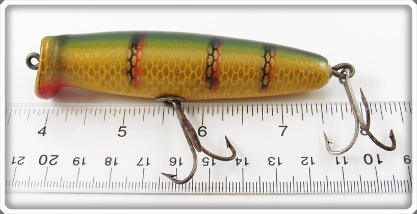 This is a nice old Creek Chub Shur Strike Yellow Perch Flat Face lure that was sold on Tough Lures! Vintage and antique fishing lures are added for sale often so keep checking back! I buy old lures so feel free to contact me if you have any to sell.