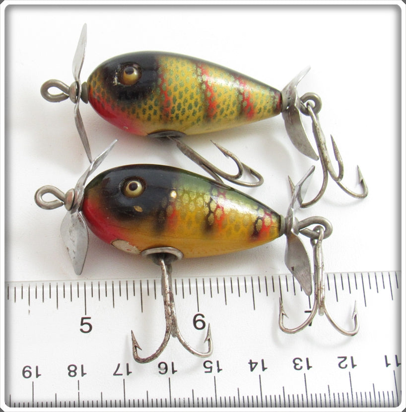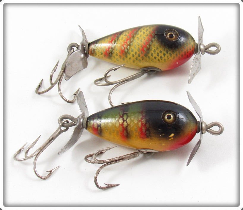This is a nice old Shur Strike Yellow Perch Petite Spinner Pair that was sold on Tough Lures! Vintage and antique fishing lures are added for sale often so keep checking back! I buy old lures so feel free to contact me if you have any to sell.