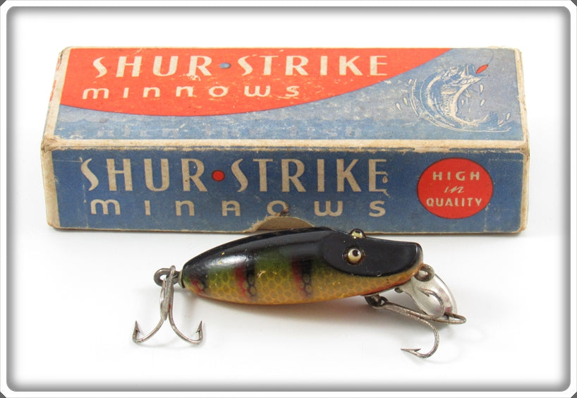 This is a nice old Shur Strike Yellow Perch River Rustler lure that was sold on Tough Lures! Vintage and antique fishing lures are added for sale often so keep checking back! I buy old lures so feel free to contact me if you have any to sell.