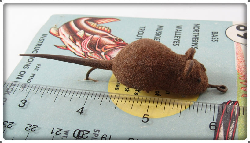 This is a nice old Somerset Distributors Brown Flocked Super Mouse lure that was sold on Tough Lures! Vintage and antique fishing lures are added for sale often so keep checking back! I buy old lures so feel free to contact me if you have any to sell.