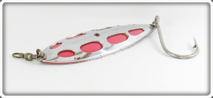 This is a nice old South Bend Chrome & Red Musky Sunspot Spoon lure that was sold on Tough Lures! Vintage and antique fishing lures are added for sale often so keep checking back! I buy old lures so feel free to contact me if you have any to sell.