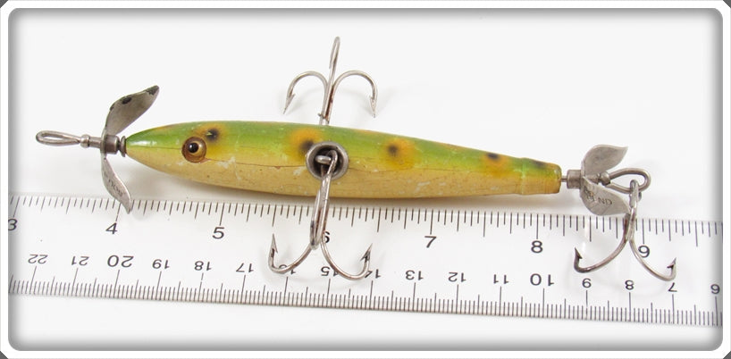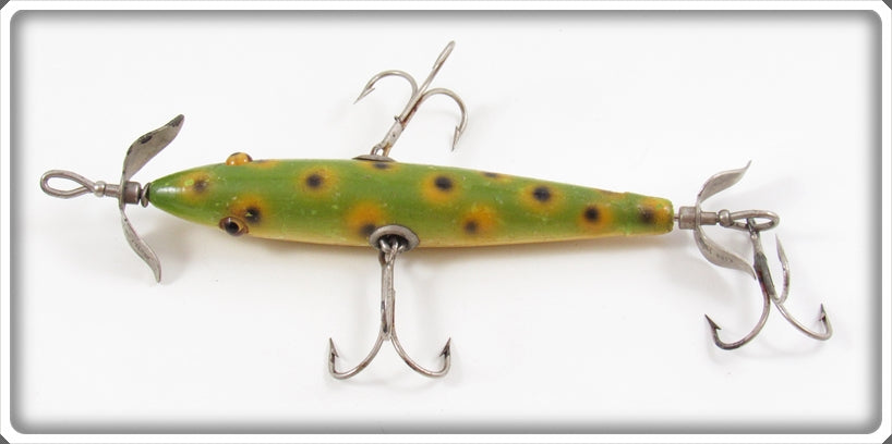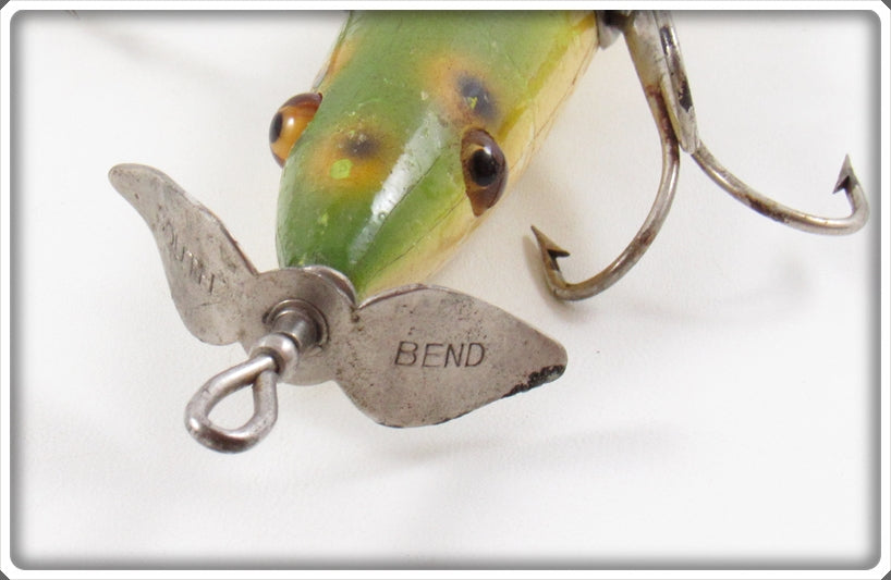 This is a nice old South Bend Frog Spot Panatella Minnow lure that was sold on Tough Lures! Vintage and antique fishing lures are added for sale often so keep checking back! I buy old lures so feel free to contact me if you have any to sell.