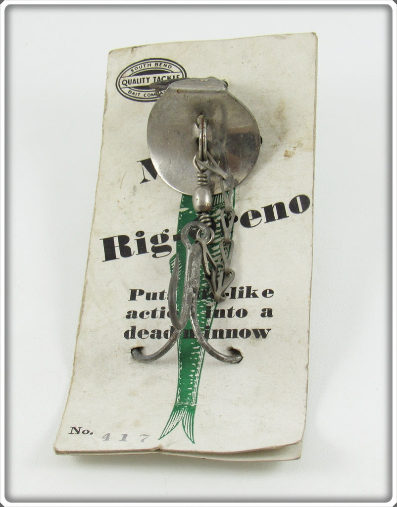 This is a nice old South Bend Minno Rig Oreno hook that was sold on Tough Lures! Vintage and antique fishing lures are added for sale often so keep checking back! I buy old lures so feel free to contact me if you have any to sell.