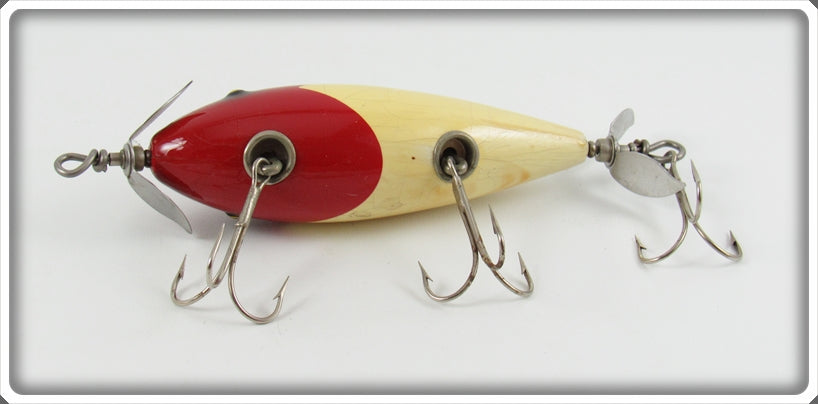 This is a nice old South Bend Red Arrowhead White Body Surf Oreno lure # 963 RW that was sold on Tough Lures! Vintage and antique fishing lures are added for sale often so keep checking back! I buy old lures so feel free to contact me if you have any to sell.