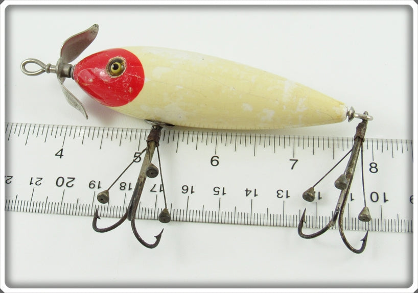South Bend Red Head White Floating Surface Minnow With Bing Hooks 921 RH