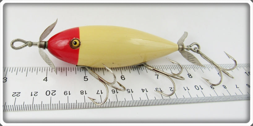 This is a nice old South Bend Red Head White Surf Oreno lure # 963 RH that was sold on Tough Lures! Vintage and antique fishing lures are added for sale often so keep checking back! I buy old lures so feel free to contact me if you have any to sell.
