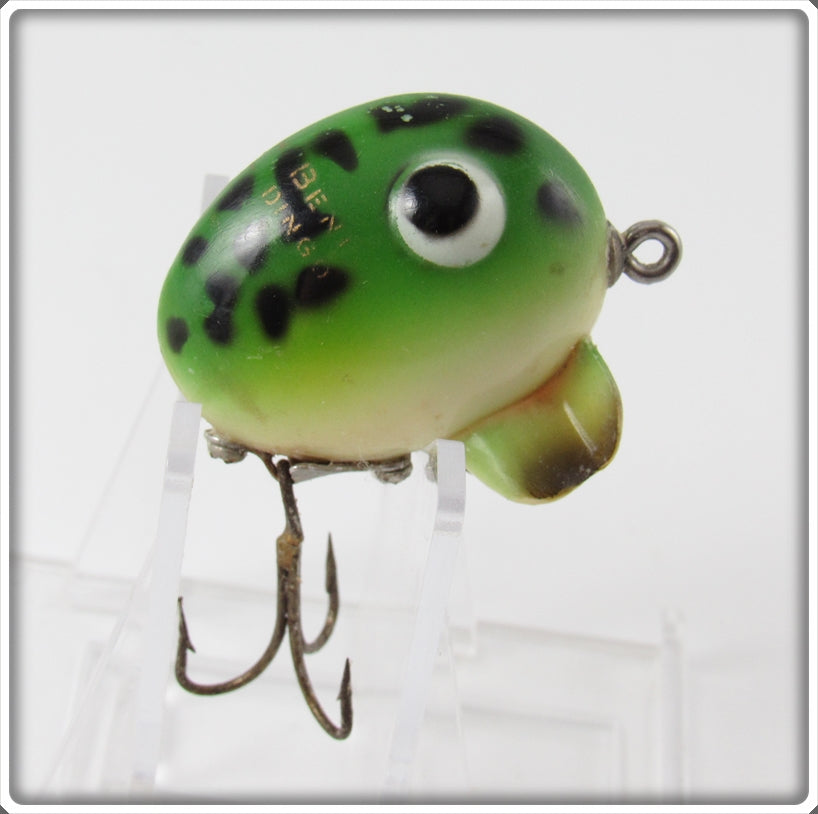This is a nice old South Bend Spotted Frog Fin Dingo lure # 1965 FR that was sold on Tough Lures! Vintage and antique fishing lures are added for sale often so keep checking back! I buy old lures so feel free to contact me if you have any to sell.