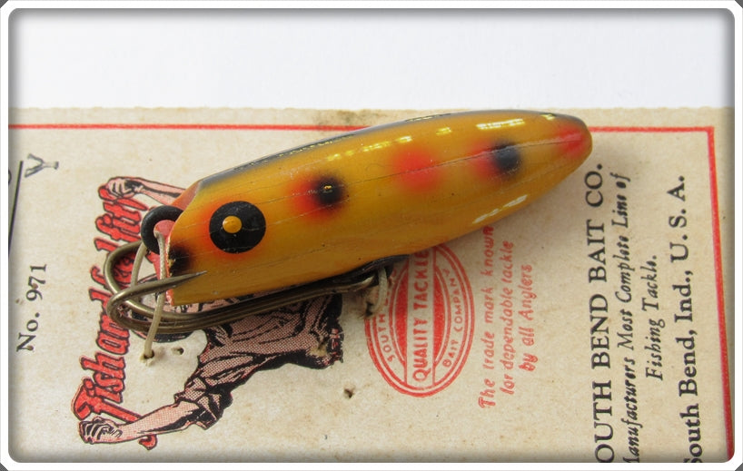 This is a nice old South Bend Trout Oreno lure # 971 Y that was sold on Tough Lures! Vintage and antique fishing lures are added for sale often so keep checking back! I buy old lures so feel free to contact me if you have any to sell.