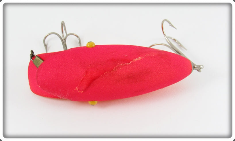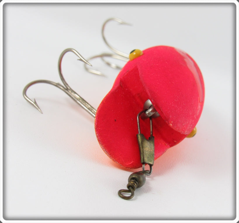 This is a nice old Southern Artificial Bait Co Fluorescent Red Blabber Mouth lure that was sold on Tough Lures! Vintage and antique fishing lures are added for sale often so keep checking back! I buy old lures so feel free to contact me if you have any to sell.