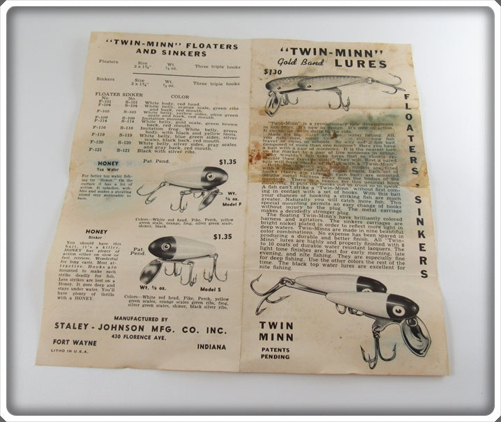 This is a nice old Staley Johnson Green Ribs Twin Minn lure # F-104 that was sold on Tough Lures! Vintage and antique fishing lures are added for sale often so keep checking back! I buy old lures so feel free to contact me if you have any to sell.